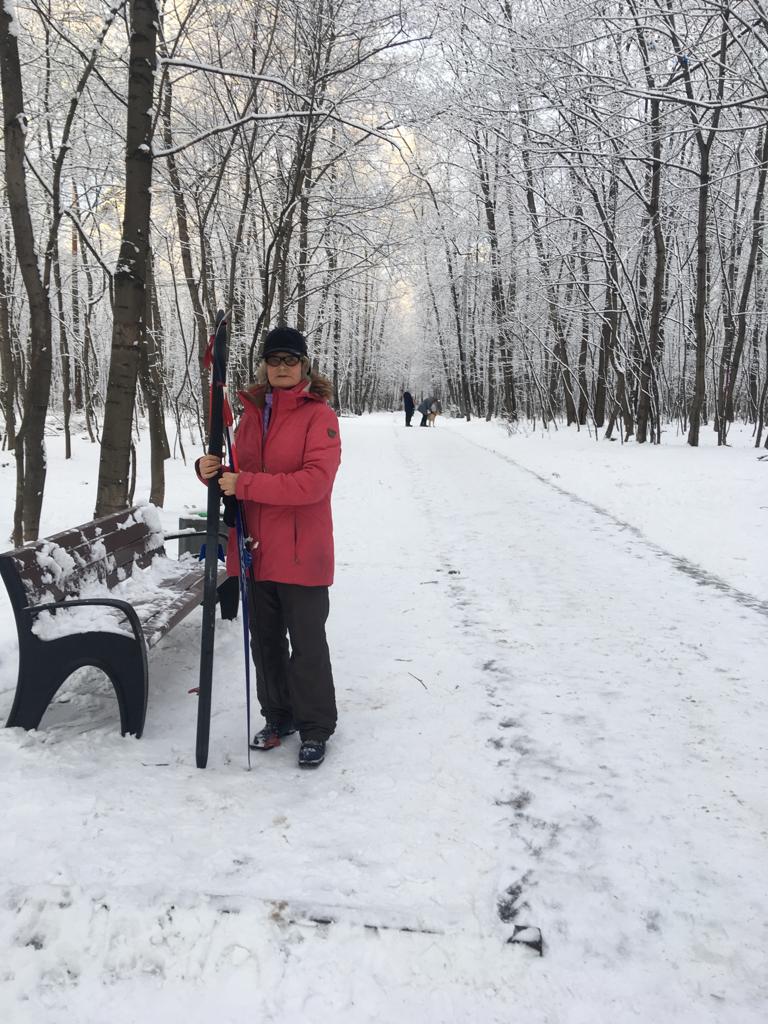 Тарасова Елена Владимировна любит лыжный спорт. На фото она на прогулке в Всесвятской роще.