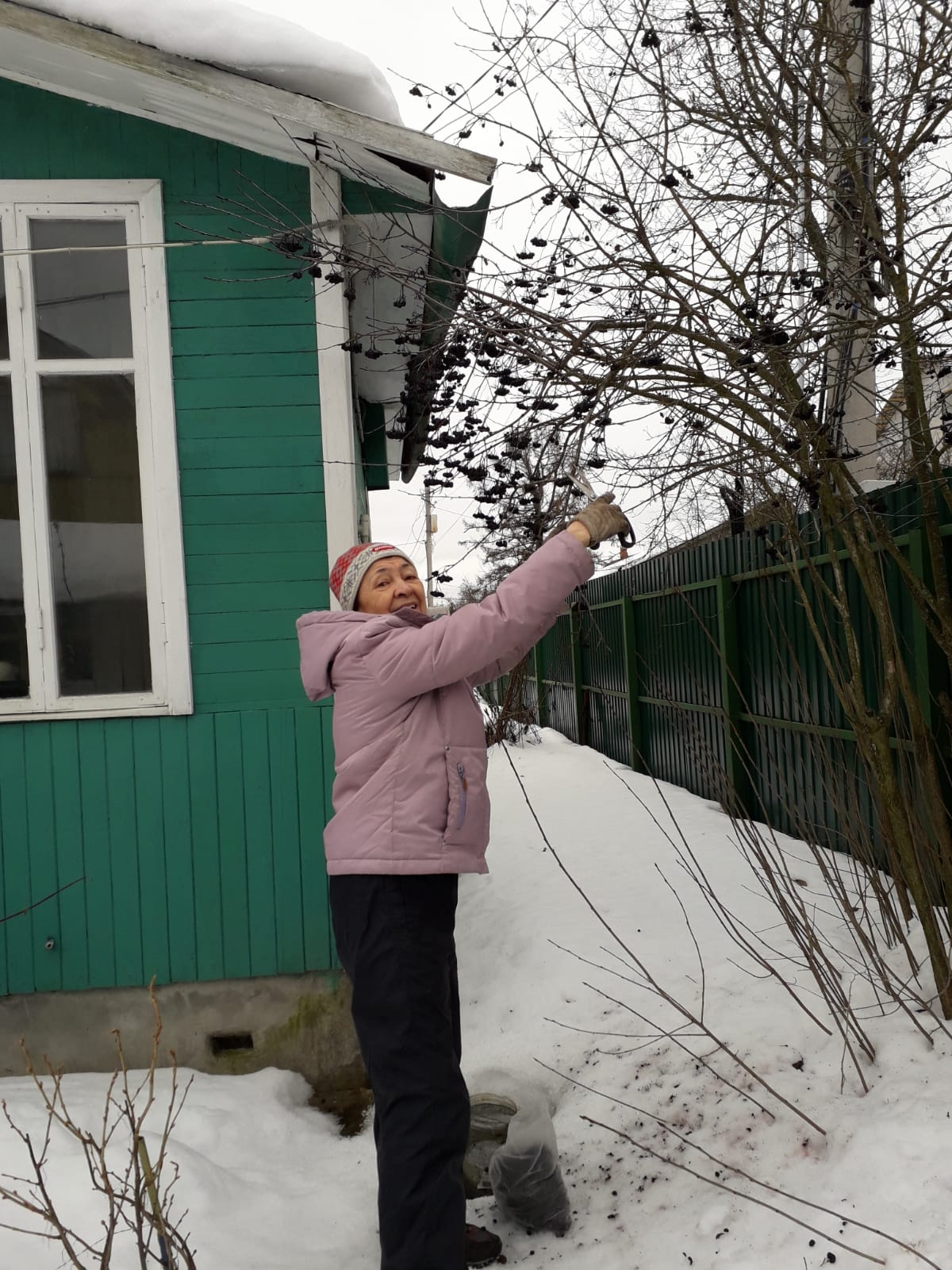 Зимина Зоя Ивановна у себя на даче в садовых заботах.